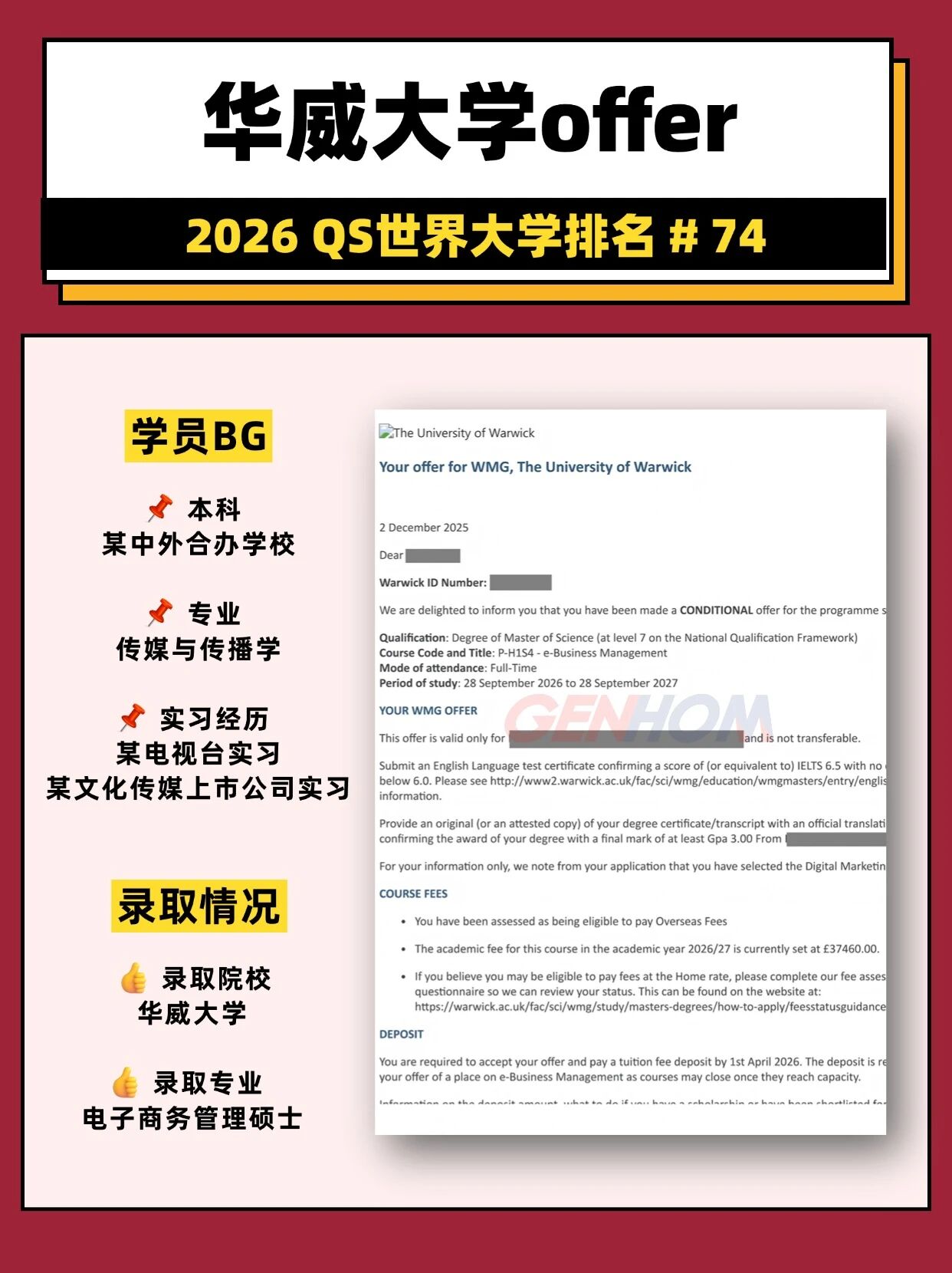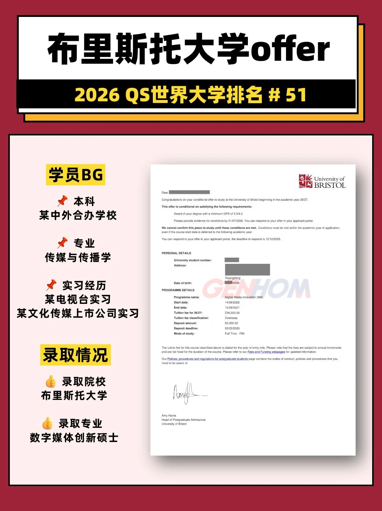 GPA3.3,斩获华威+布里斯托大学offer