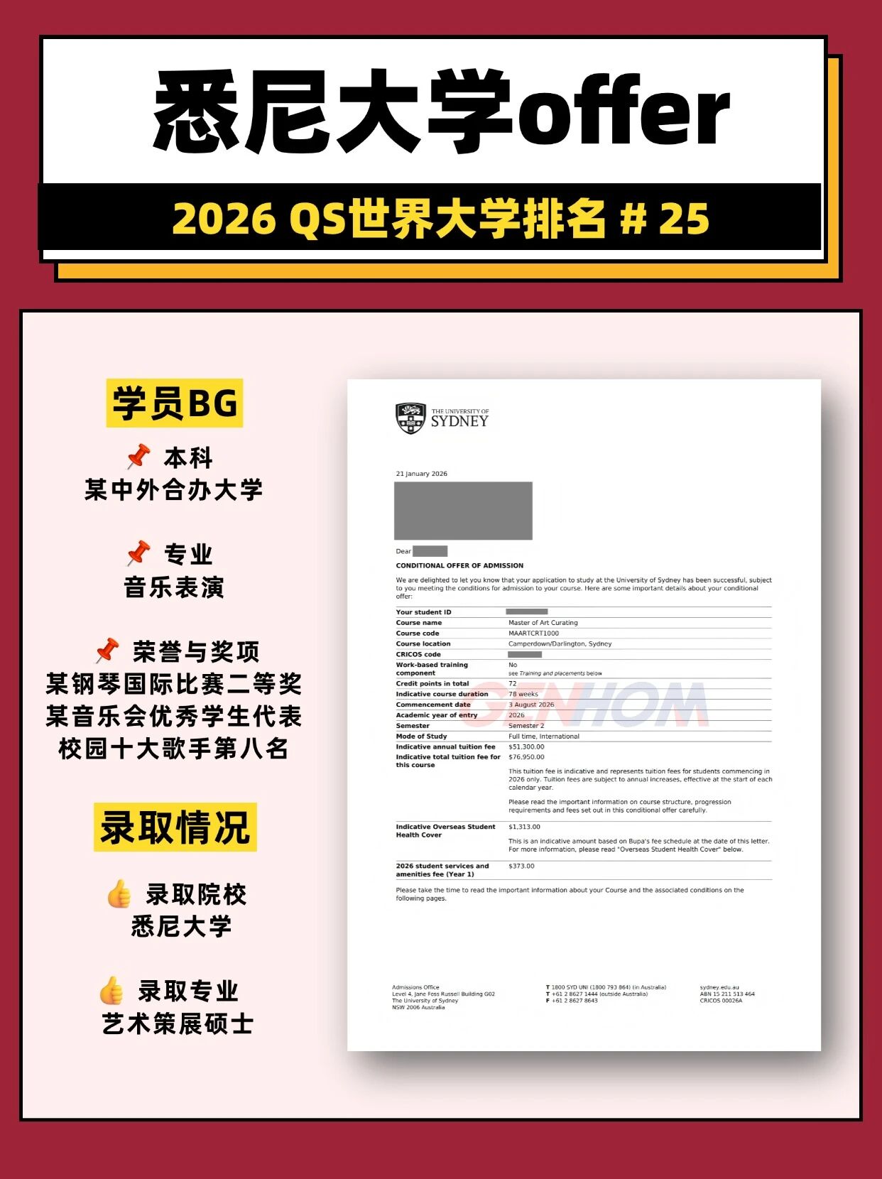 恭喜Y同学获得悉尼大学offer
